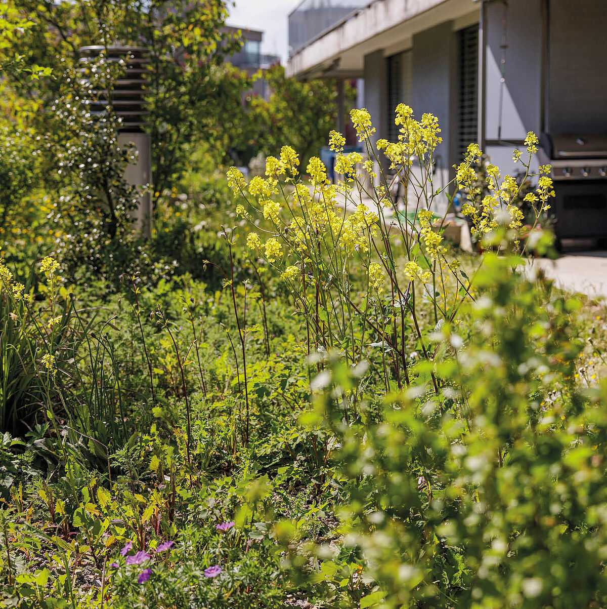 Dafür ist eine differenzierte Planung wichtig: «Es braucht gemeinsame Bereiche, die das soziale Leben in der Siedlung stärken, und auch Rückzugsbereiche.» Allein zusätzliche Raumstruktur mit Pflanzen, Natursteinen und Asthaufen erge- ben ein anderes Erscheinungsbild, was wiederum zu einer besseren Identifikation mit dem City beitrage. Schwörer setzt auf einheimische Pflanzen und achtet bei der Auswahl darauf, dass diese einen intakten Lebensraum für Kleintiere und Insekten bieten. So brauchen Schmetterlinge bestimmte Pflanzen als Futter und andere Pflanzen zur Eiablage. Erst so entstehe Artenvielfalt oder eben Biodiversität.