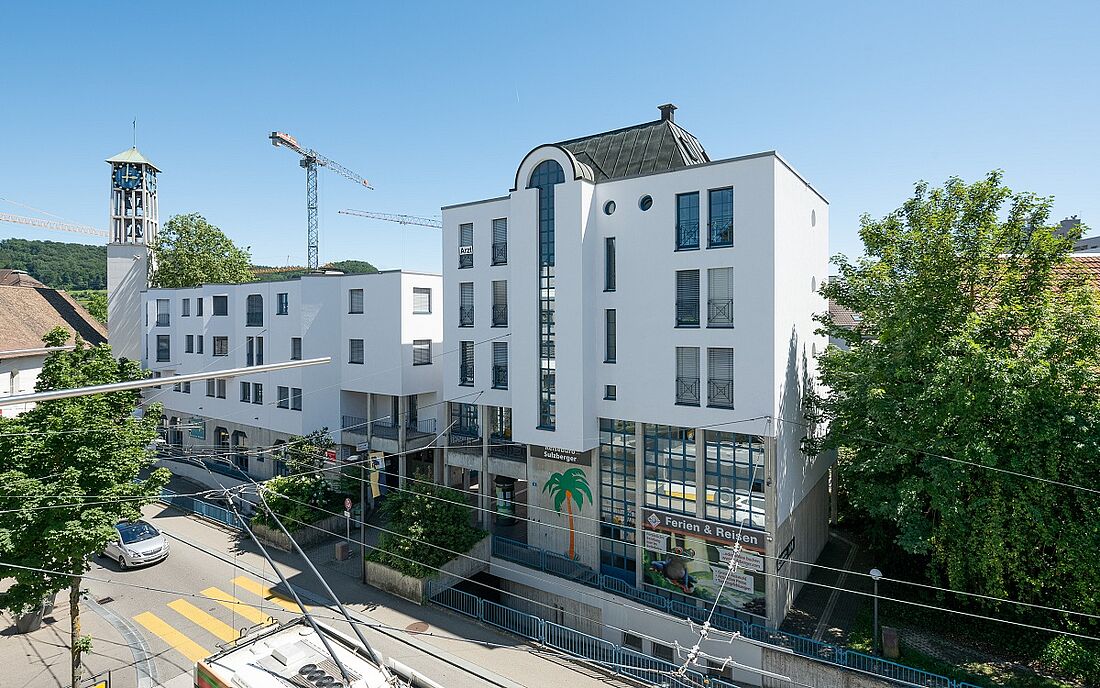 Die Wohn- und Geschäftsliegenschaft befindet sich in Gehdistanz zu verschiedenen Einkaufsmöglichkeiten sowie zu Kindergarten und Schule. Sie umfasst vier Gebäude mit insgesamt 25 Wohnungen mit 1.5 bis 5.5 Zimmern und knapp 1 000 m2 Büro-, Verkaufs- und Gastronomieflächen.