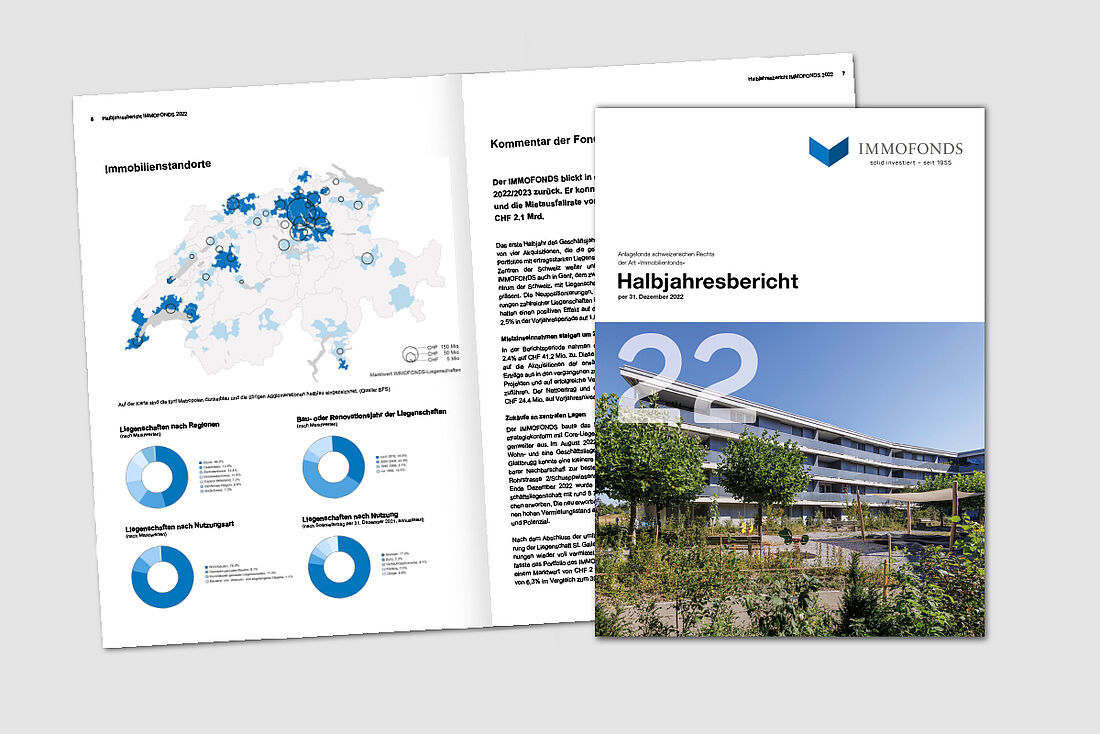 Der IMMOFONDS blickt in einem anspruchsvollen Umfeld auf ein gutes erstes Halbjahr 2022/2023 zurück. Die Mietzinseinnahmen stiegen 2.4% auf CHF 41.2 Mio. und die Mietausfallrate sank von 2.5% auf 1.9%. Nettoertrag und Gesamterfolg erreichten Vorjahresniveau. Der Marktwert des Port-folios beträgt CHF 2.1 Mrd.
